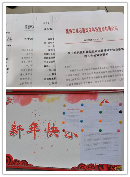 2020年伊始,在這場(chǎng)沒(méi)有硝煙的抗疫戰斗中,億萬(wàn)中國人民團結一心、同舟共濟,眾志成城抗疫情。自爆發(fā)疫情以來(lái),三圣企業(yè)集團也立即成立防疫領(lǐng)導小組,緊急召開(kāi)兩次會(huì )議,部署相關(guān)防疫工作,嚴格執行《南通市人民政府關(guān)于實(shí)施新型冠狀病毒感染的肺炎疫情一級響應措施的通告》文件精神。