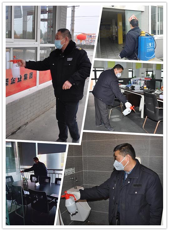 每天對辦公區、廠(chǎng)區、公共設施進(jìn)行兩次消毒工作,積極預防感染,加強空氣的流通,禁止使用空調,嚴格實(shí)行分餐制度。