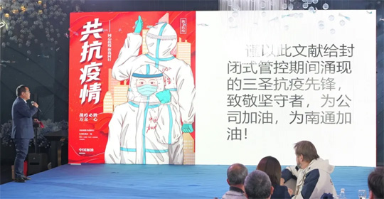 年會(huì )不只有歡樂(lè ),也有感動(dòng)。施總監通過(guò)一張張圖片,一段段文字又將我們帶回了那段艱難的歲月,回想起那時(shí)的艱苦卓絕,那時(shí)的眾志成城,那時(shí)的樂(lè )觀(guān)向上,我們的眼眶濕潤。